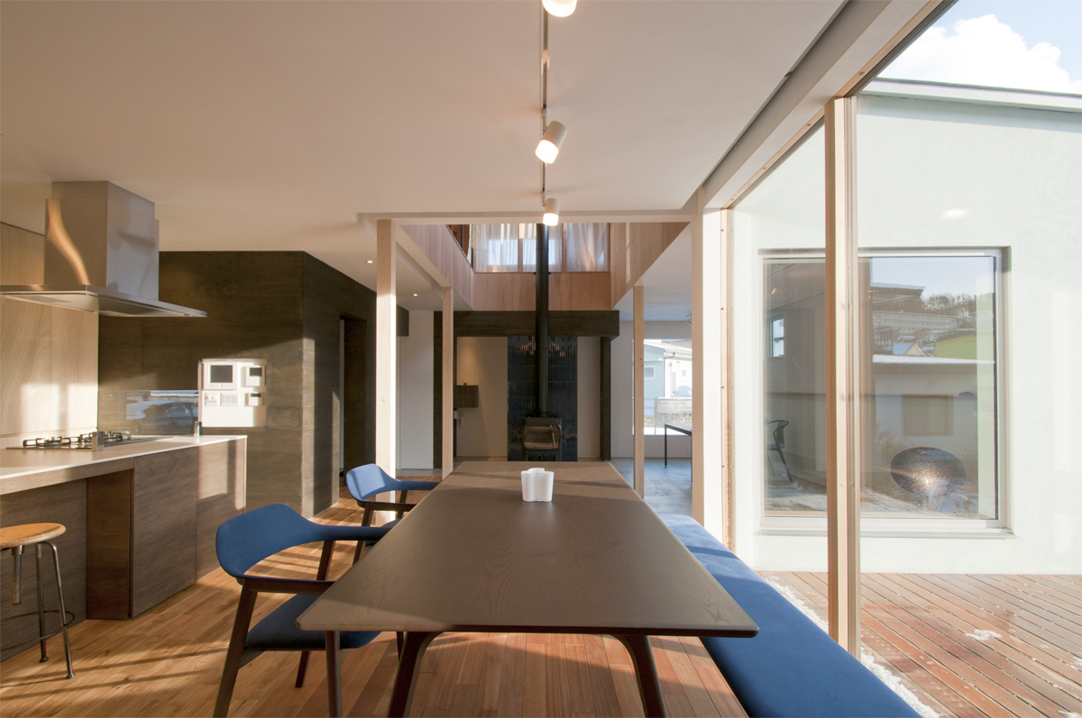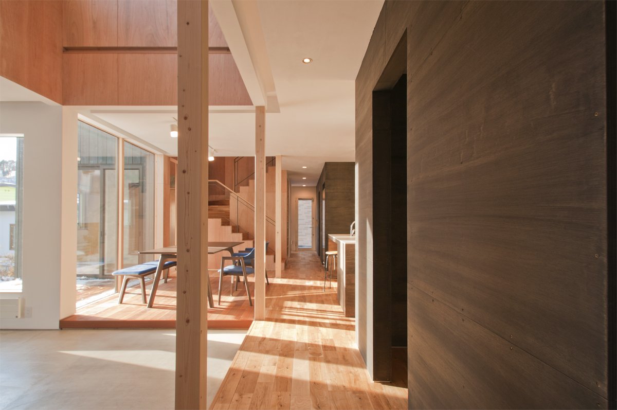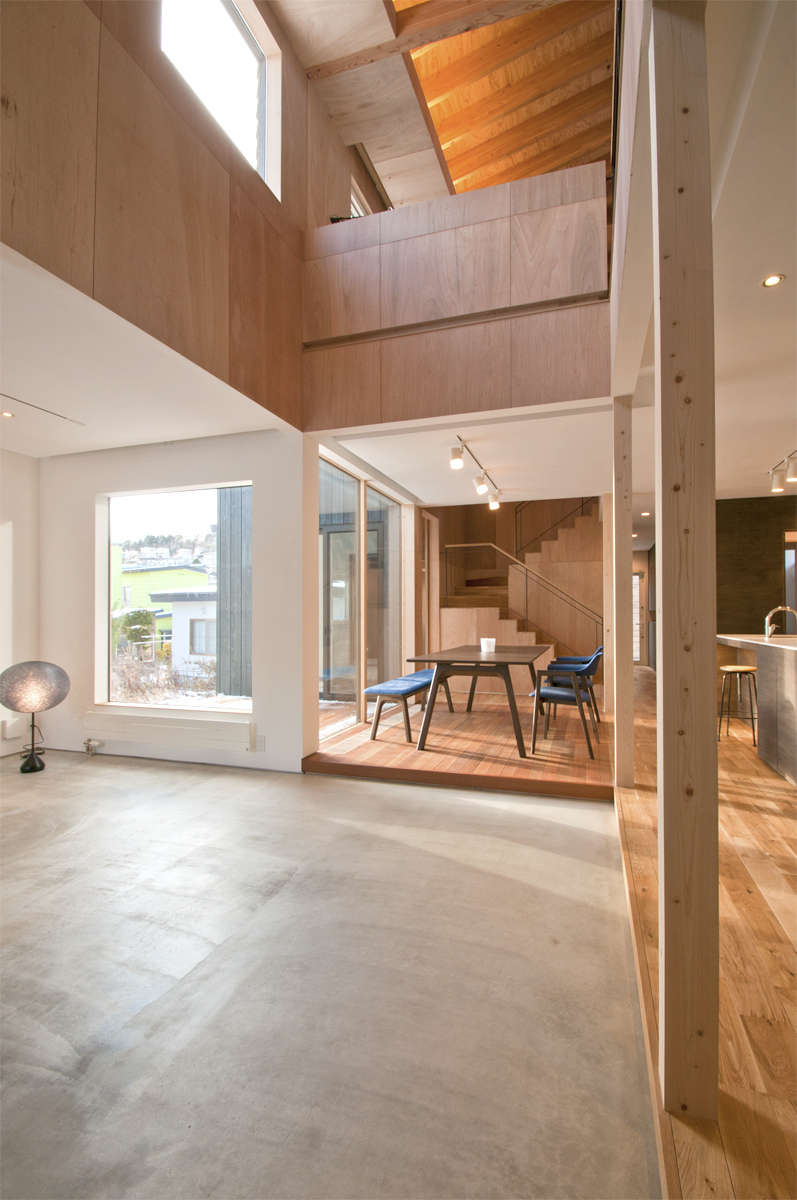 家の隅々まで温度がほとんど一定である高気密高断熱住宅の特性と、用途を決めつけないプランニング、家の内部に設けられた「もうひとつの内部」によって、自由でのびやかな「外」の感覚を創り出そうとしました。
